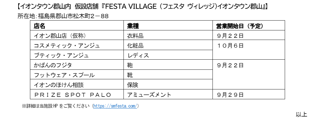 | 17.郡山フェスタ (郡山イオン)【閉店】 |
